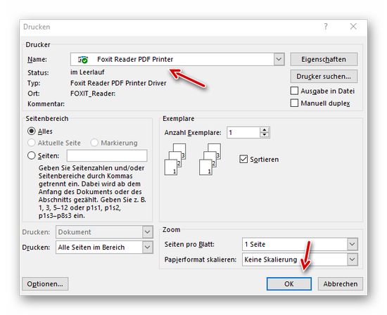 Um nicht unnötig Etiketten durch Fehldrucke zu vermeiden, leiten wir den Druck in eine PDF-Datei um: