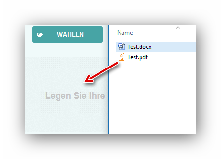 Unsere Test-Datei wird mit gehaltener linker Maustaste auf das grau schraffierte Feld gezogen: