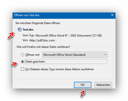…worauf sich das bekannte Fenster zum Download und Speichern einer Datei öffnet: