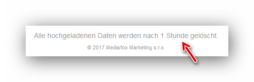 Nach Angaben des Betreibers der Website wird die hochgeladene Datei nach einer Stunde gelöscht: