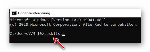 In der geöffneten DOS-Box fügen wir “tasklist” ein und drücken die Enter-Taste: