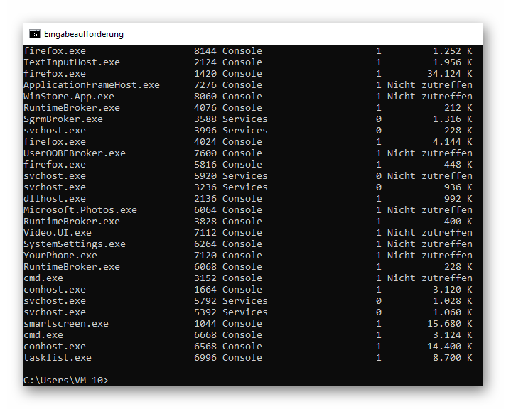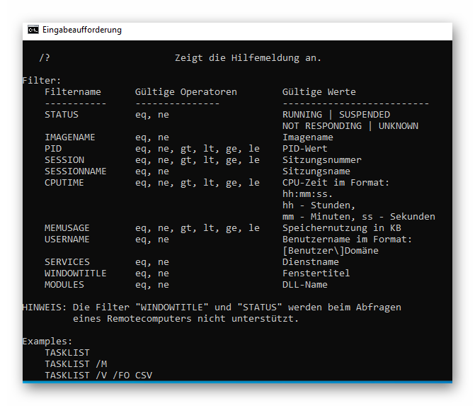 Mit der Eingabe von tasklist /?…