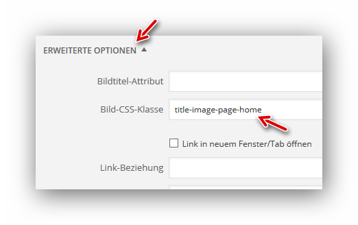 In den erweiterten Optionen wird die verwendete CSS-Klasse eingetragen (title-image-page-home):