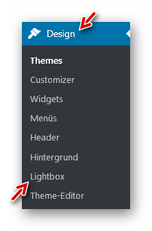 Im Dashboard gibt es nun unter Design -> Lightbox einen neuen Unterpunkt. Nach Klick darauf…