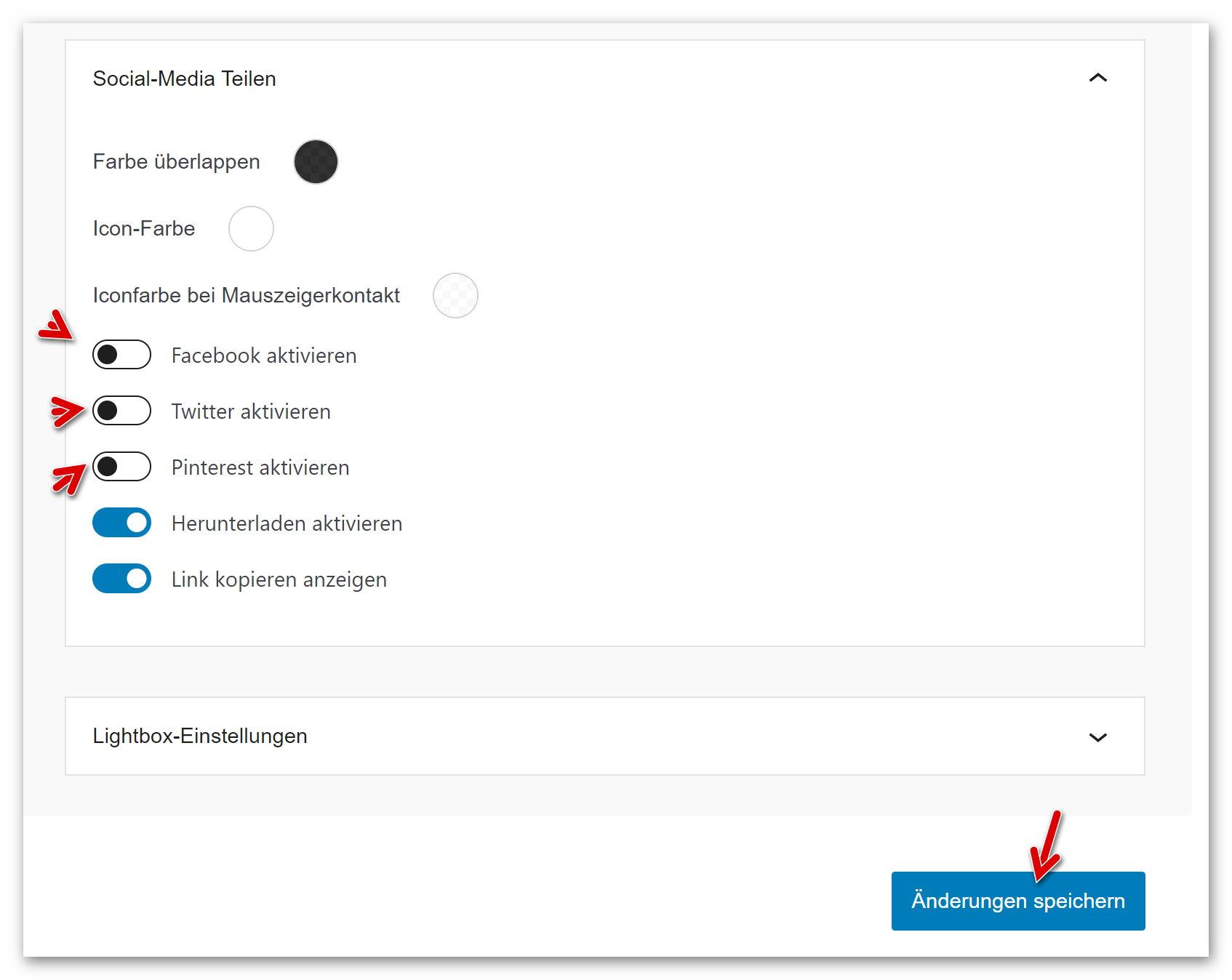 Diese Optionen von Social-Media sollten i. d. R. abgewählt werden: