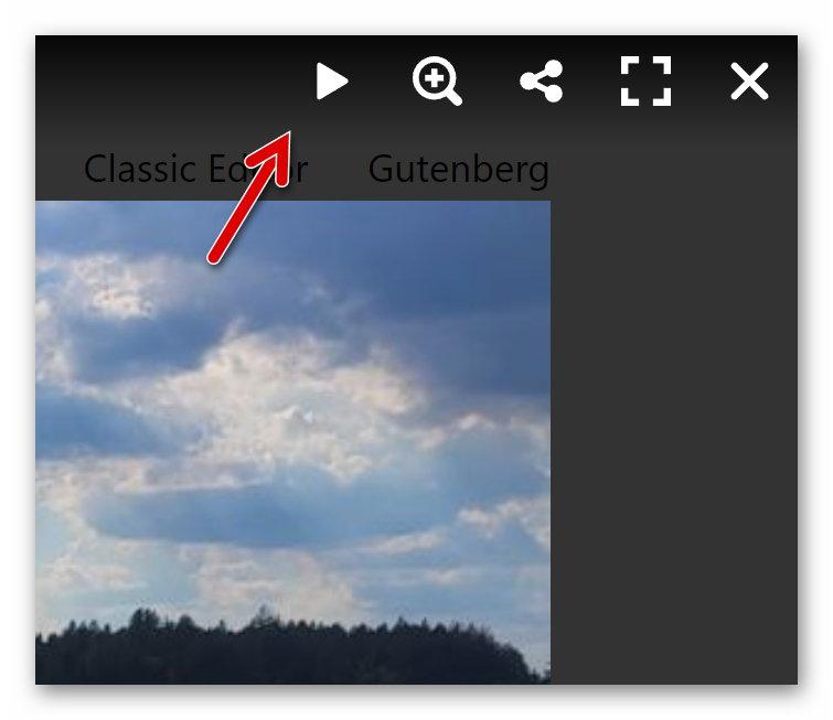 Nach Klick auf ein beliebiges Bild sind rechts oben weitere Optionen verfügbar. Mit Klick auf den kleinen Pfeil startet die bekannte Diashow: