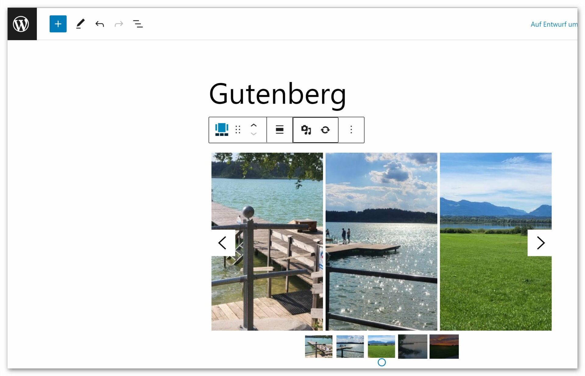 Wir wählen einen passenden Block und fügen dann die gewünschten Bilder hinzu: