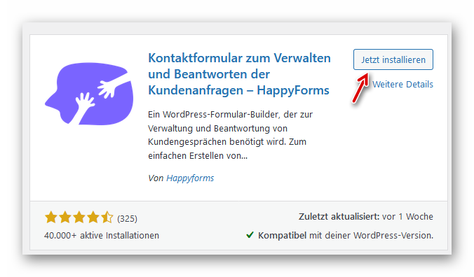 Wir installieren das Plugin im Dashboard über Plugins -> Installieren: