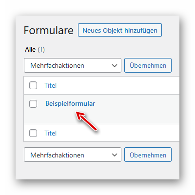…und sehen dann das vorhandene Beispielformular in der Liste: