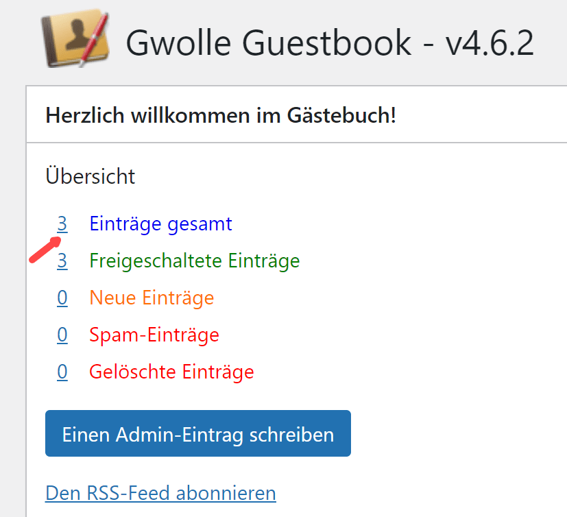 Das Gästebuch wie hier beschrieben weiter einrichten.