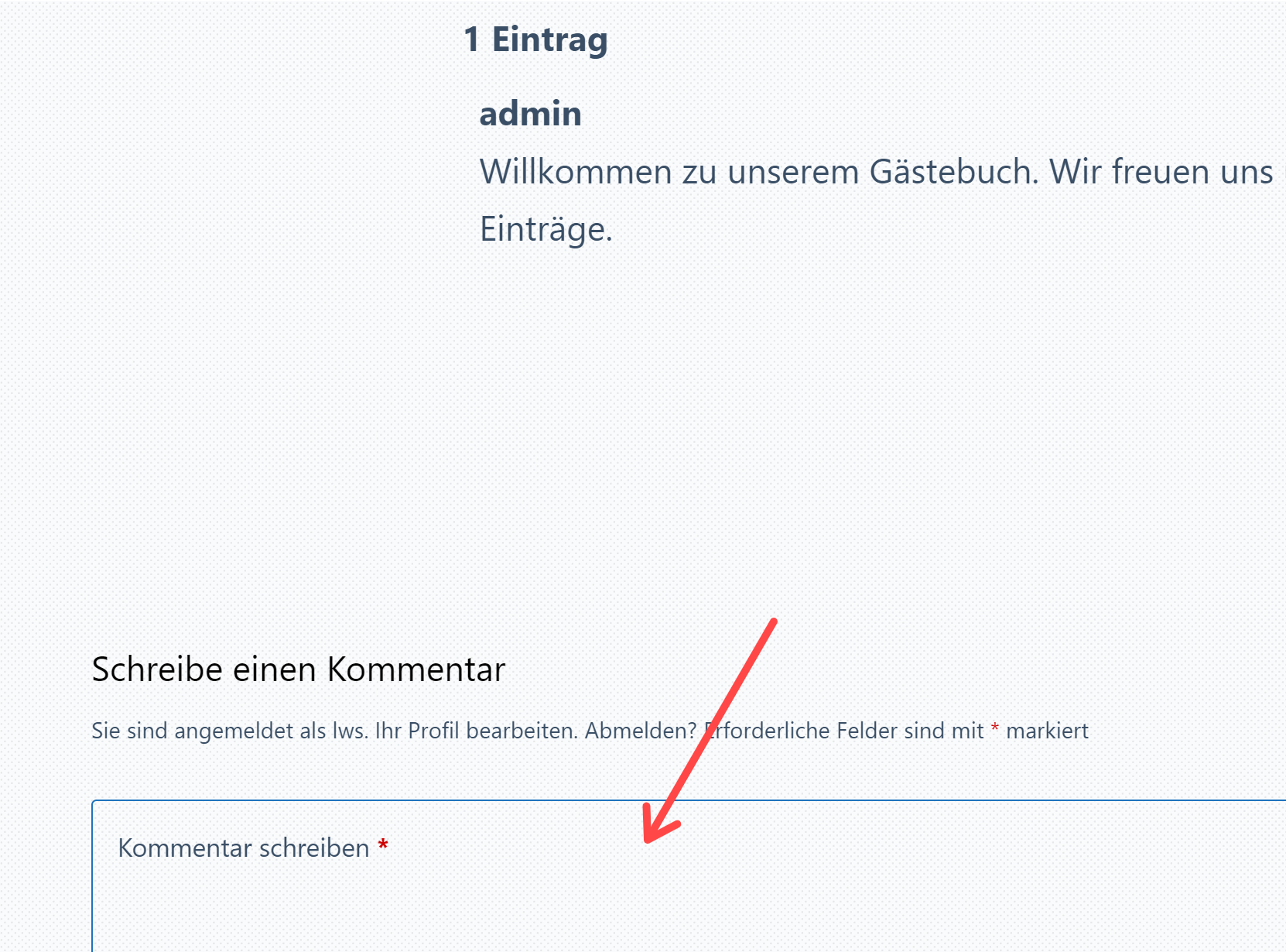 Es kann sein, dass auf der Gästebuchseite trotz Deaktivierung von Kommentar-Feldern unten ein unerwünschtes Formular auftaucht: