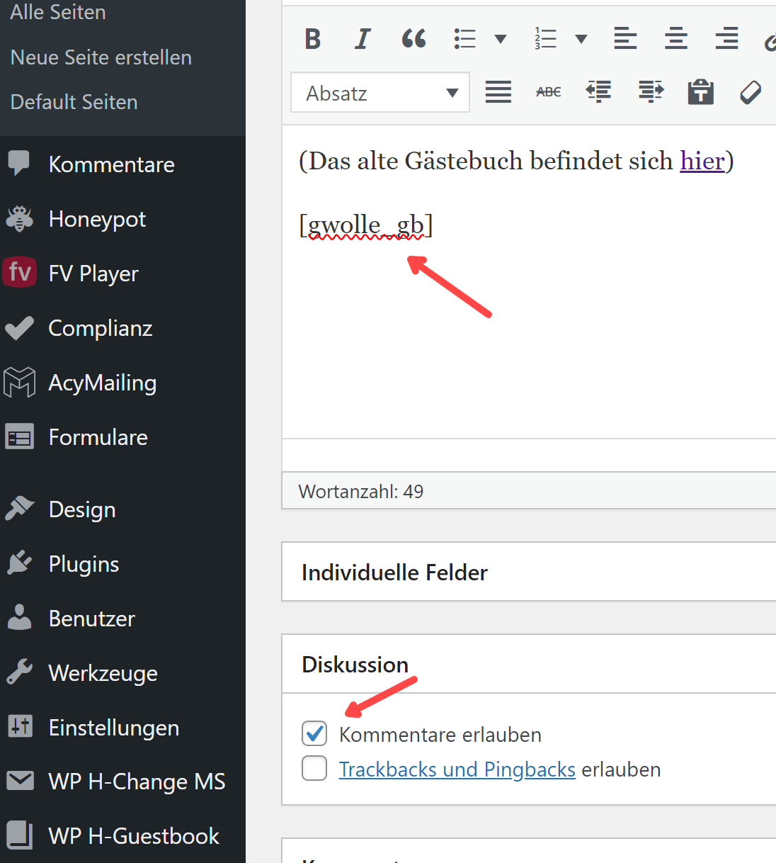 …und durch den Shortcode für das Gästebuch „GWolle“ ersetzen: