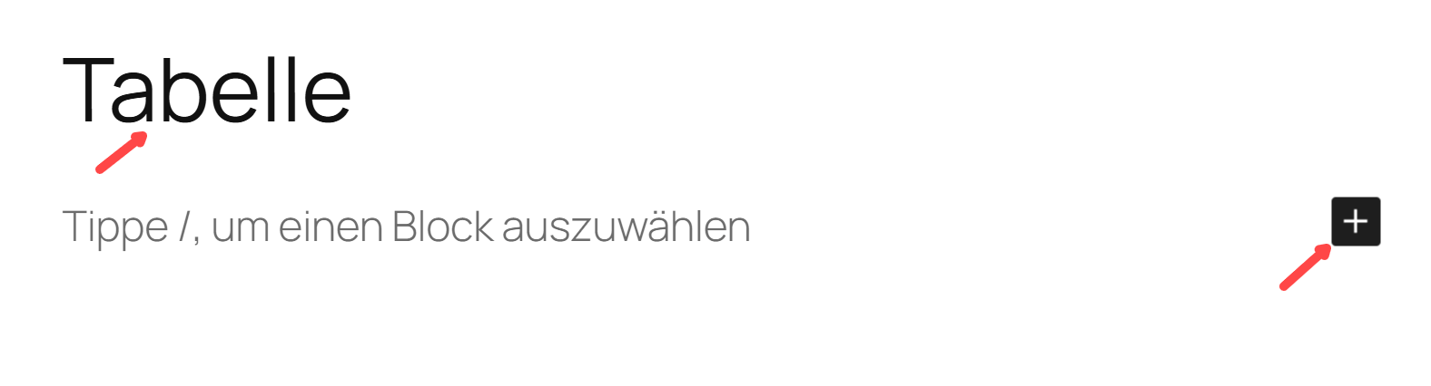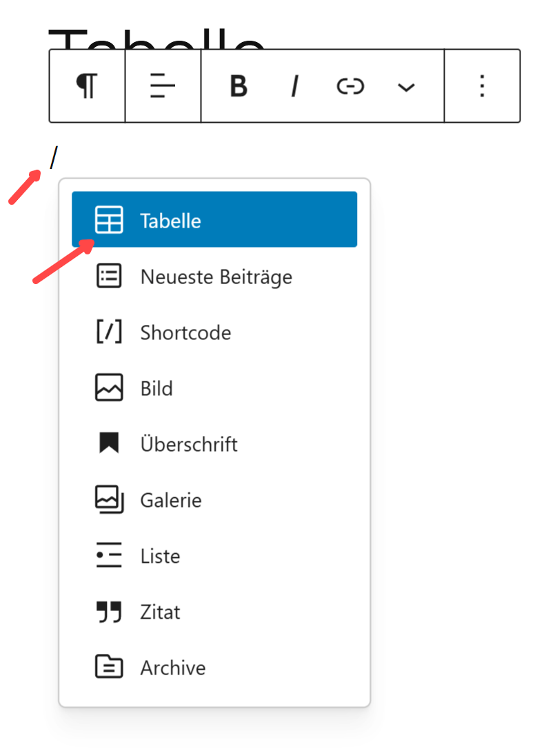 Alternativ können wir auch „/“ eingeben und den Block „Tabelle“ auswählen: