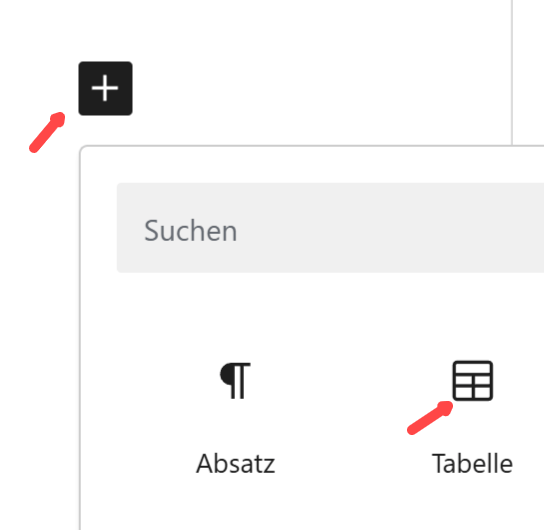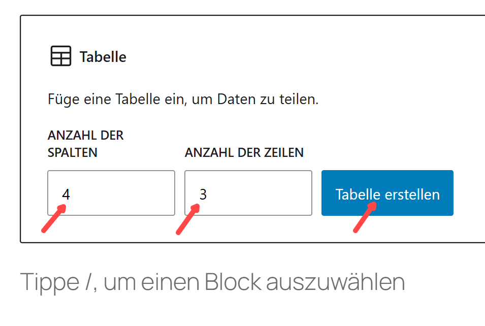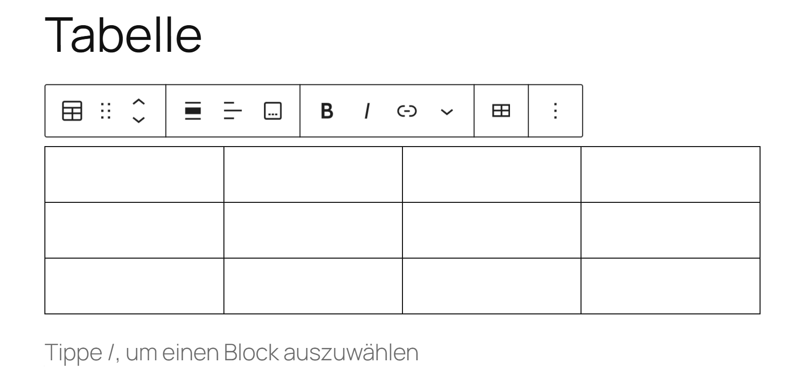 Tabellen lassen sich mit dem Block „Tabelle“ leicht anlegen und ggf. ergänzen.