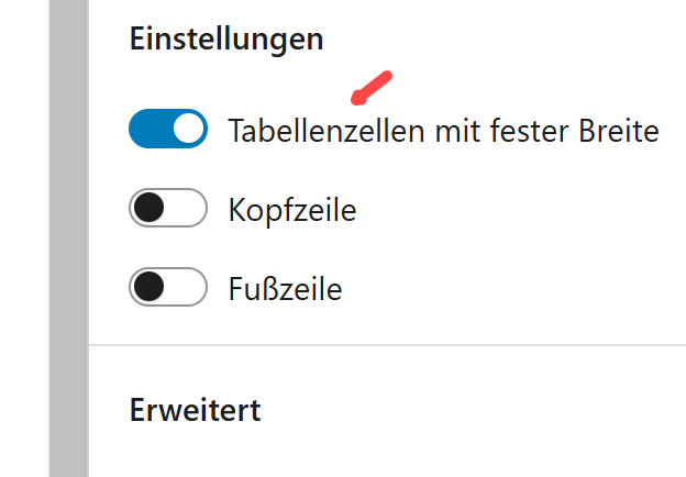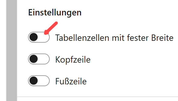 Nach dem Ausschalten dieser Option werden die Spaltenbreiten je nach Texteingabe angepasst: