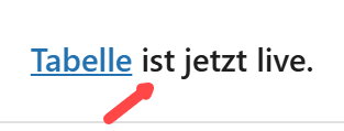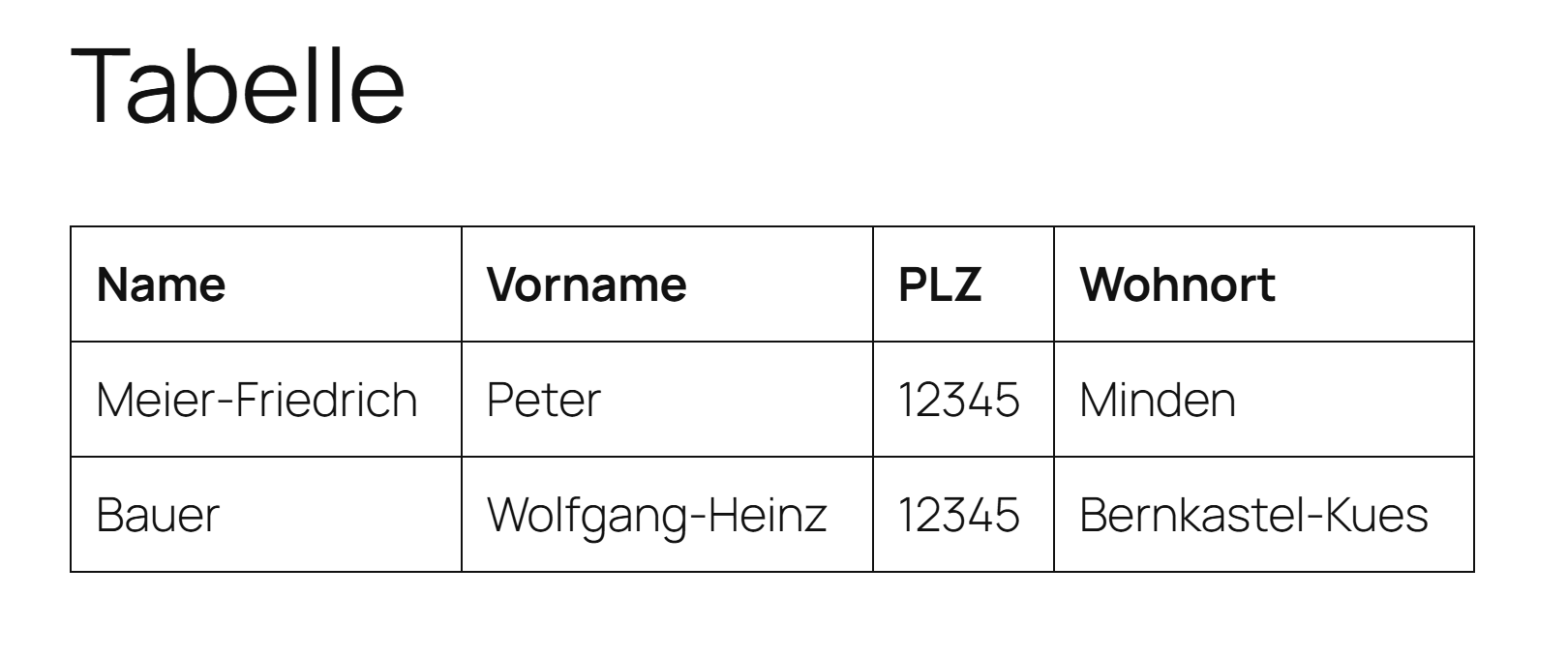 Im Frontend sehen wir nun die fertige Tabelle, welche an die Breite der Texte angepasst wurde: