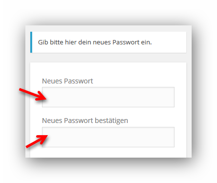 Nach Klick auf den Bestätigungslink wird hier zweimal das neue Passwort eingegeben: