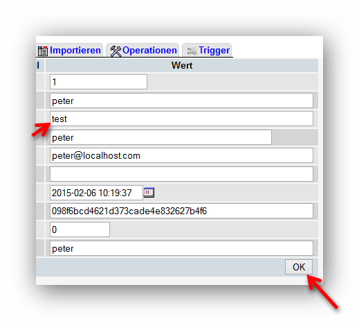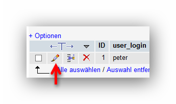 In die Datenbank einloggen und die gezeigte Tabelle öffnen: