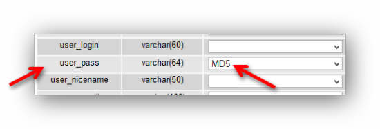 In dieser Zeile wird bei “user_pass” der Wert “MD5” eingestellt…