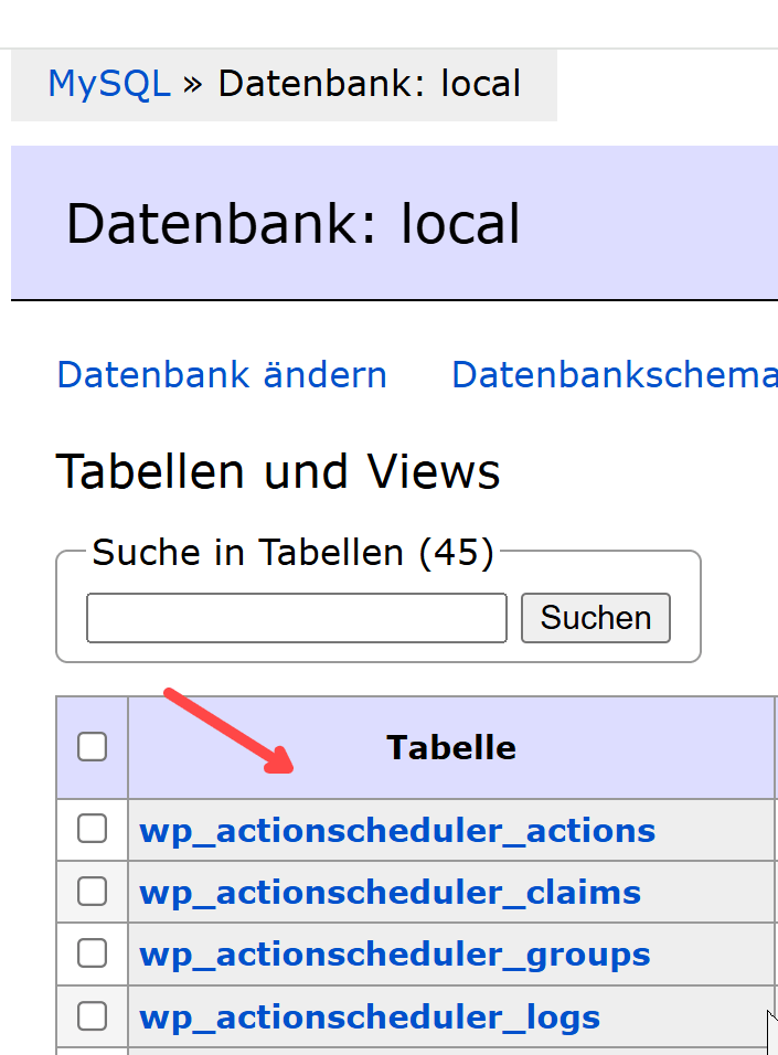 Wir scrollen in den Datenbanktabellen nach unten…