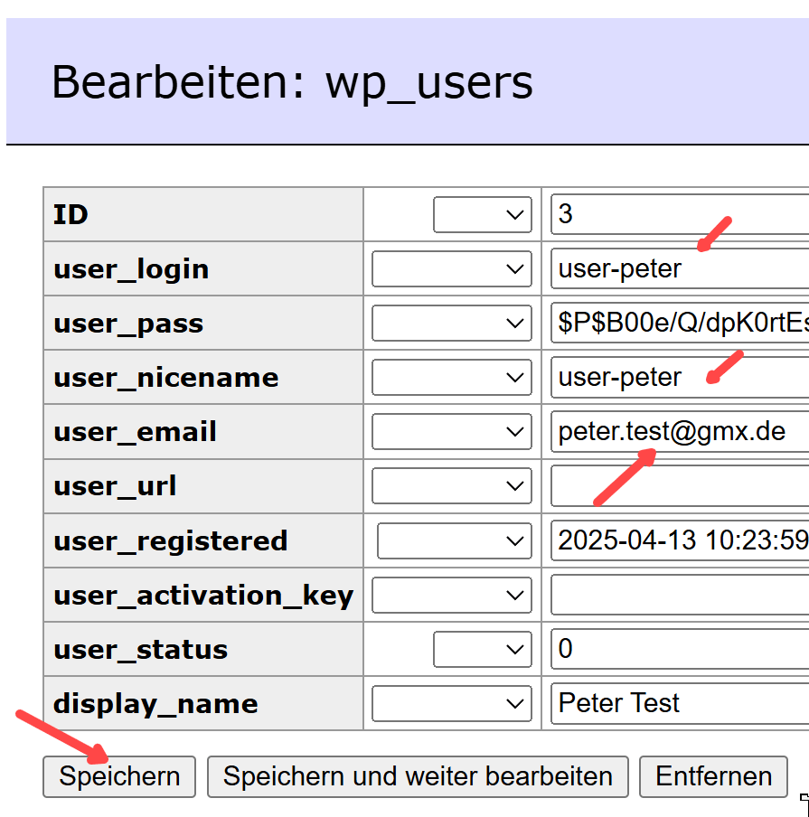 Vor Änderung des Benutzernamens ist unbedingt die Datenbank mit geeigneten Tools wie „WPvivid“ zu sichern. Dann lässt sich bei einem Fehler der alte Zustand wieder herstellen.