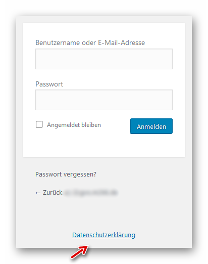 Auf der Login-Seite von WordPress muss auch ein Link zur Datenschutzerklärung vorhanden sein.