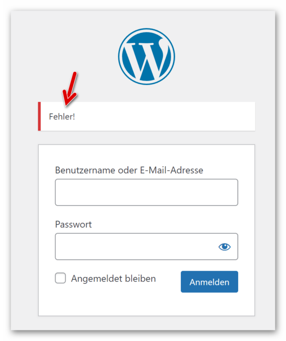 Mit Login-Versuchen im Anmeldeformular von WordPress lässt sich ggf. auch ein Benutzernamen erraten und als gültig anzuzeigen. Dieses Sicherheitsrisiko kann mit Einbau des folgenden PHP-Codes in die Datei „functions.php“ (Child-Theme empfohlen) oder eines Snippet-Plugins beseitigt werden.
