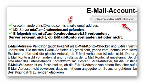 Bei diesem Beispiel wird die E-Mail-Adresse als gültig angezeigt: