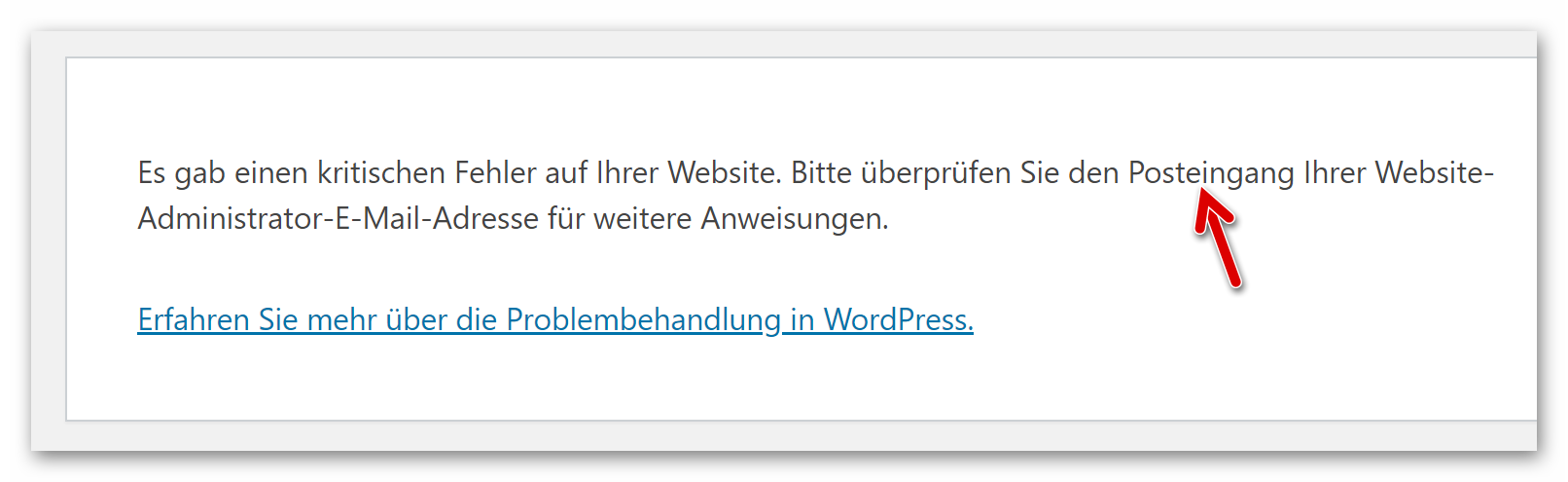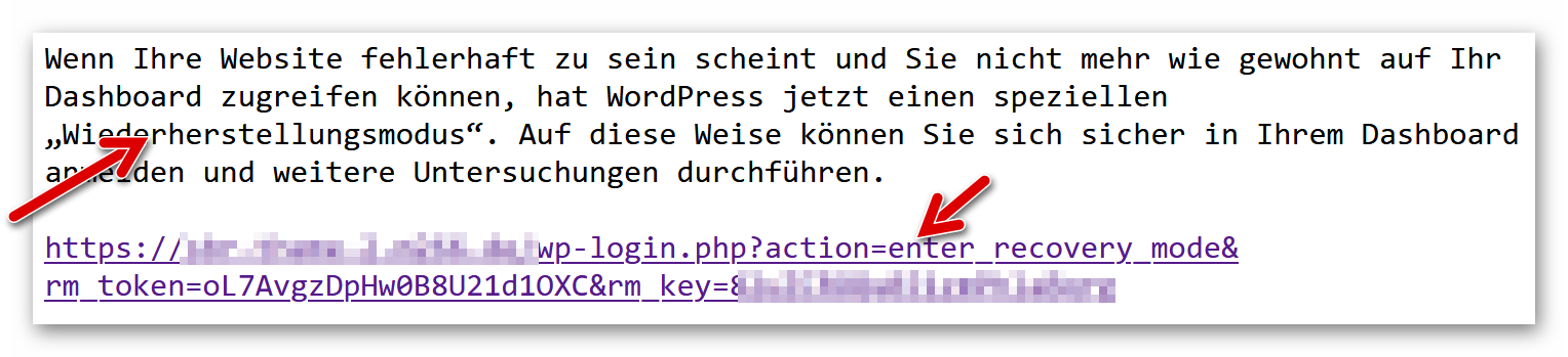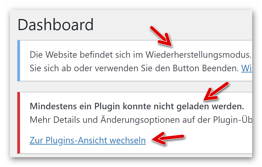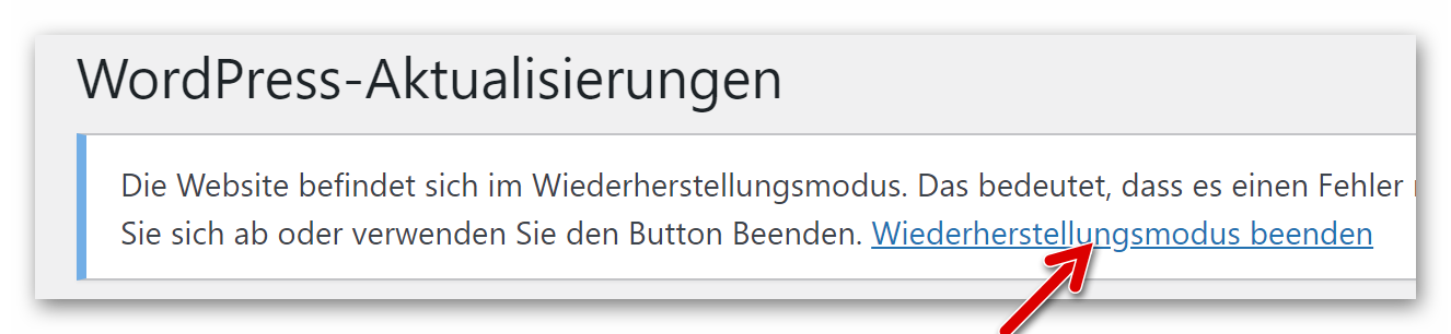 Der kritische Fehler, verursacht durch ein Plugin, wurde beseitigt und die Website ist wieder erreichbar. Mit Klick auf den Link verlassen wir den Wiederherstellungsmodus: