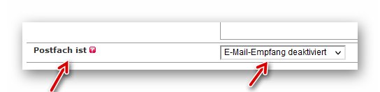 In der Zeile „Postfach“ ändern wir denn Eintrag wie gezeigt auf „E-Mail-Empfang deaktiviert“ ab…