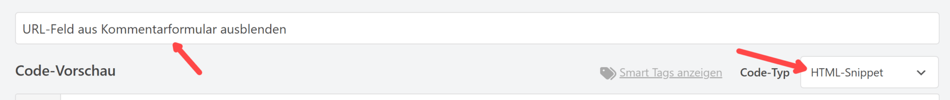 Als Beispiel verwenden wir ein Snippet zum Ausblenden des Feldes „URL“ im Kommentarformular.