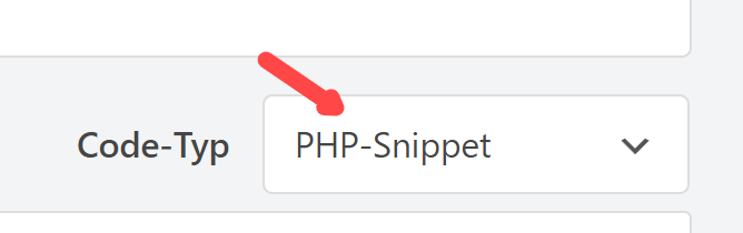 In den meisten Fällen benötigen wir den Code-Typ „PHP-Snippet“: