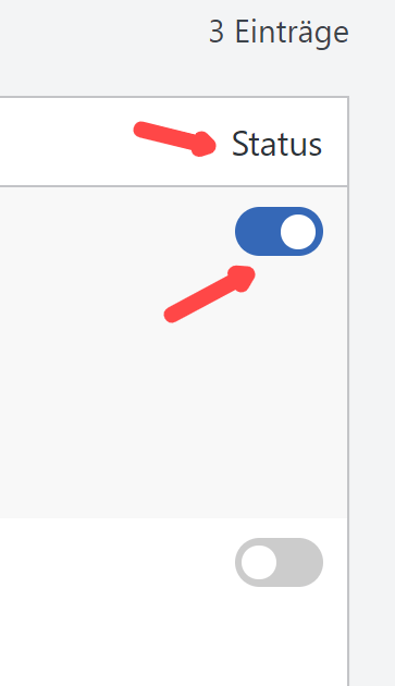 Der Schalter „Status“ muss aktiv sein, damit das Snippet ausgeführt wird: