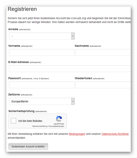 …und geben im folgenden Formular unsere Daten ein (für die geforderte E-Mail-Adresse kann auch eine Zweitadresse oder eine Adresse vom eigenen Server wie z. B. cronjob@meine-domain.de verwendet werden):