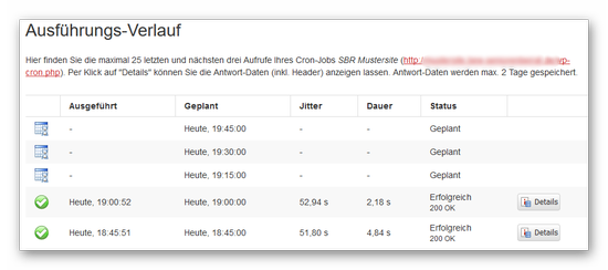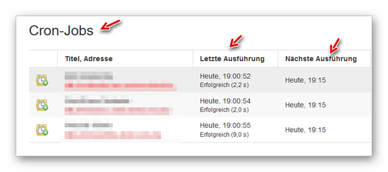 Hier sind als Beispiel bestehende Cronjobs aufgelistet: