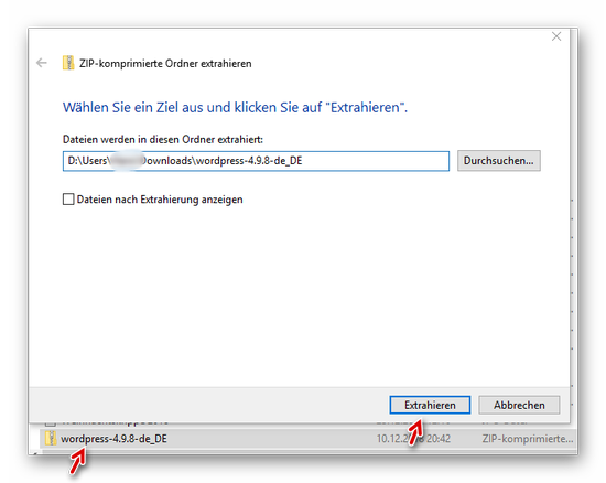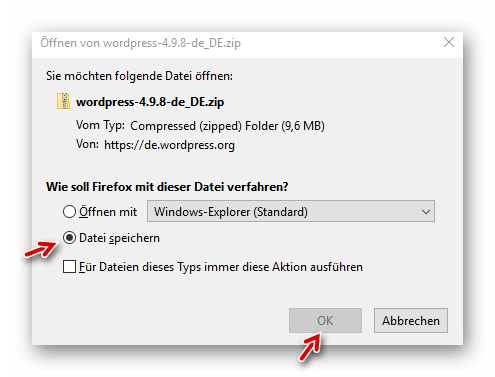 Die WordPress-Datei (ZIP) wird heruntergeladen…