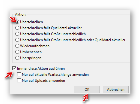 Die vorhandenen Dateien werden überschrieben, was mit der Abfrage (Immer diese Aktion ausführen) bestätigt wird: