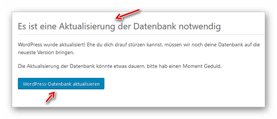 Im Dashboard wird uns nun wieder die neue WordPress-Version zur Aktualisierung angeboten, welche wir natürlich NICHT ausführen: