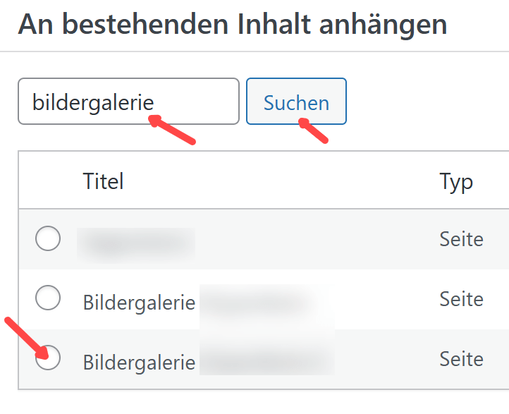 Wir suchen die zugehörige Seite und markieren sie zur Verknüpfung: