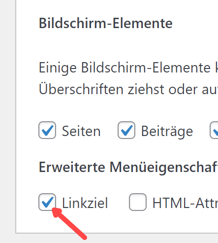 …und bei Linkziel einen Haken setzen: