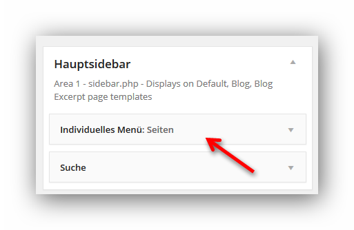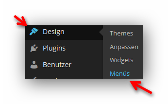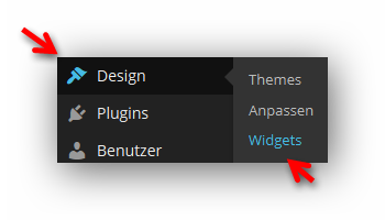 Zum Einfügen des fertigen Menüs in die Sidebar (Seitenleiste) auf Design -> Widgets klicken…