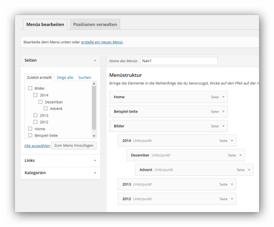 Hier wurde ein Beispiel-Menü mit einigen Unterseiten erstellt: