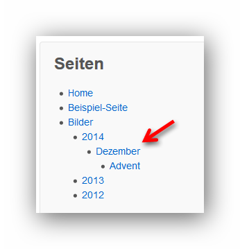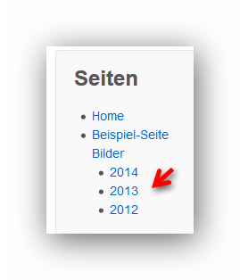 Zunächst sind nur die Seiten der ersten Ebene zu sehen. Ein Klick auf “Bilder”…