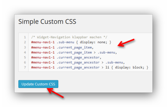 Die Code-Zeilen beziehen sich auf die ID des ersten ul-Elements im Widget (Im Beispiel: #menu-nav1-1) und müssen je nach Theme geändert werden. Hier wurde als Muster das Theme “Responsive” benutzt.