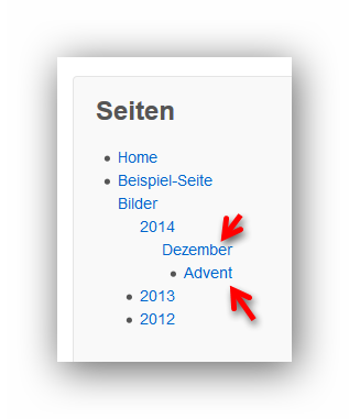 Mit weiteren Klicks auf die betreffenden Unterseiten werden die darunter befindlichen Seiten aufgeklappt: