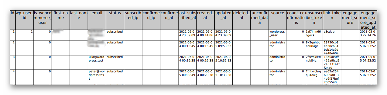 Wir starten phpMyadmin und öffnen die Tabellen “…mailpoet_subscribers”, welche alle Abonnenten enthält: