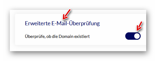 Hier schalten wir die E-Mail-Überprüfung ein: