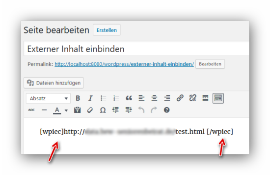 Zum Einfügen von externen Inhalten (Content) wird der folgende Shortcode verwendet: