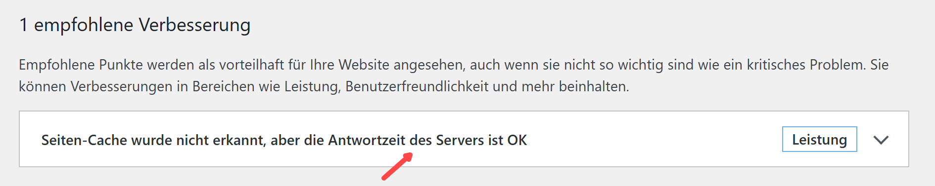 Diese Meldung weist auf den fehlenden Seiten-Cache hin: